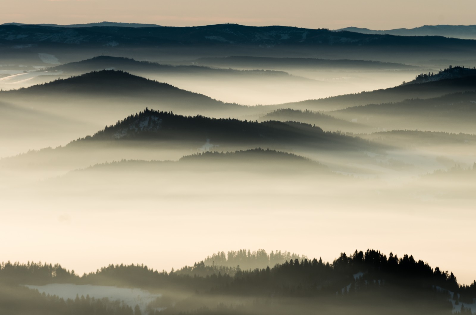 Fototapeta - Mgliste góry o poranku - fototapeta.shop